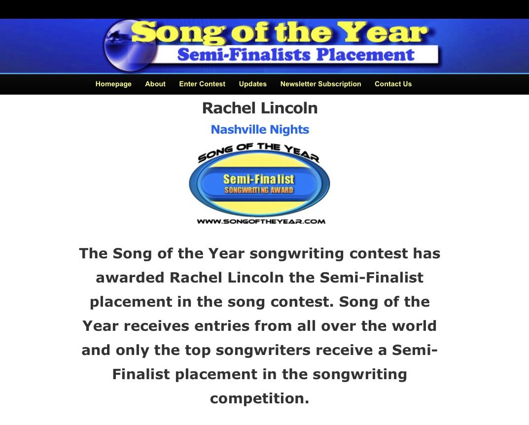 Rachel’s new track ‘Nashville Nights’ that will released on March 1 is already getting recognition before it’s even been released. It has placed as a semi-finalist in the Country category in the latest Song Of The Year Songwriting Contest. Pre-save it on your preferred streaming platform here